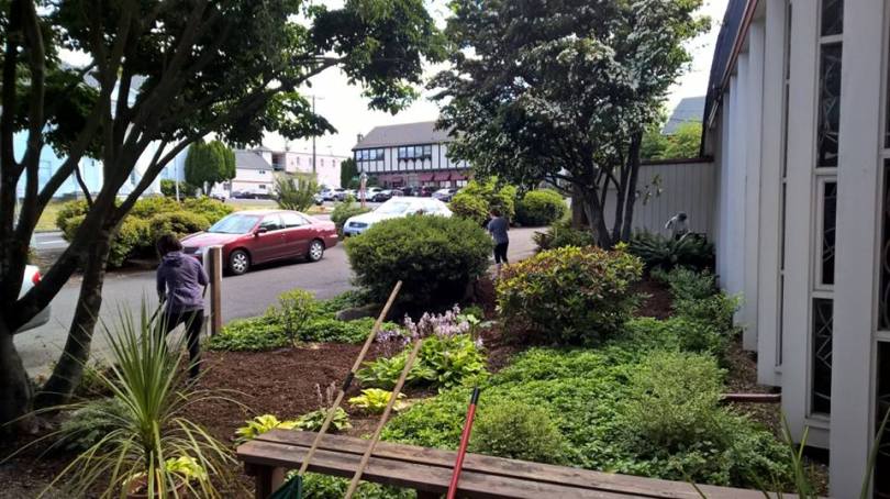 Making the church grounds look gorgeous!