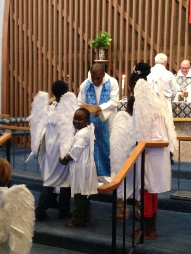 Sunday school children bring the offering in Advent
